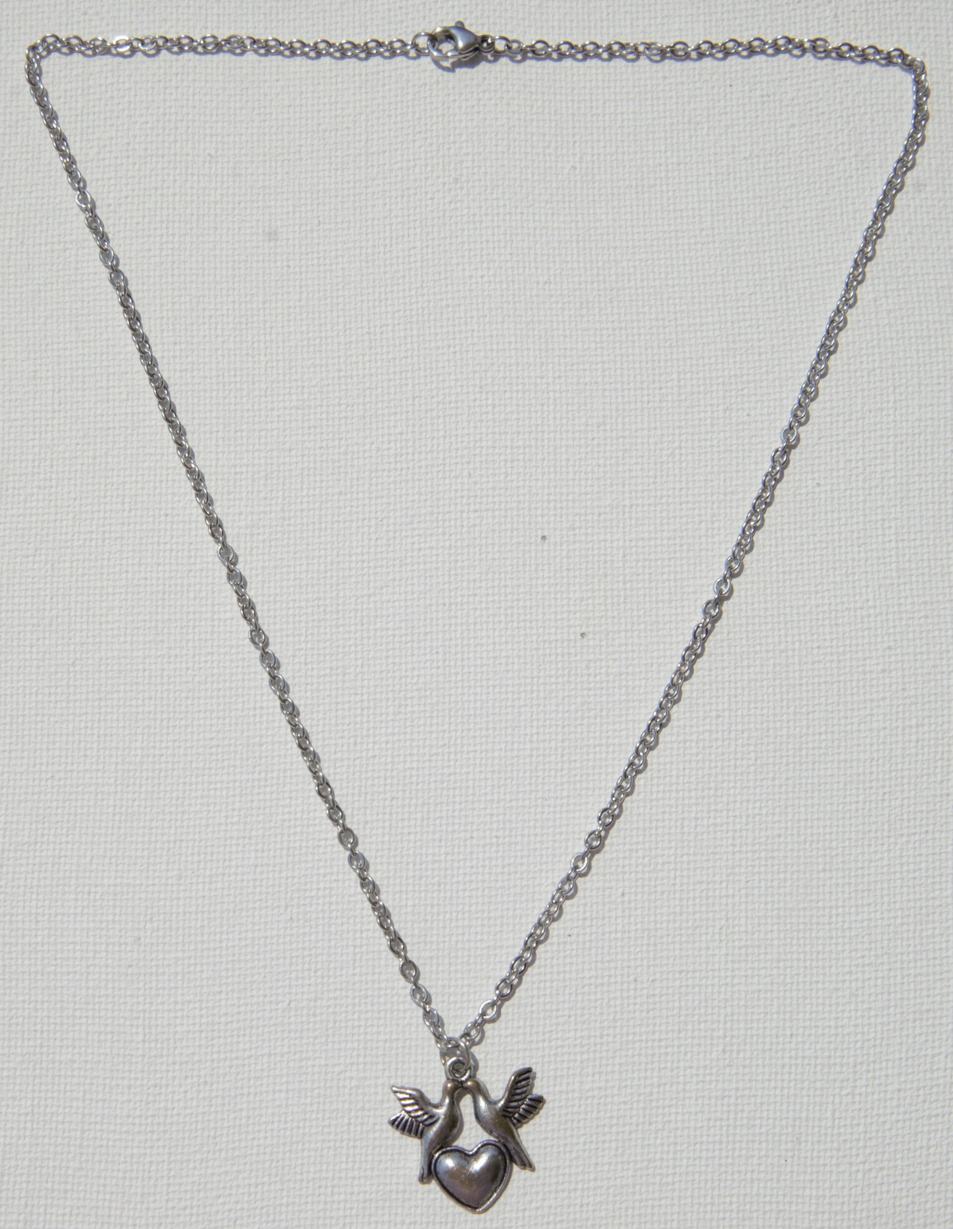 Collier coeurs colombes en metal argenté ,40/45 cm