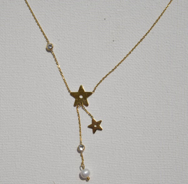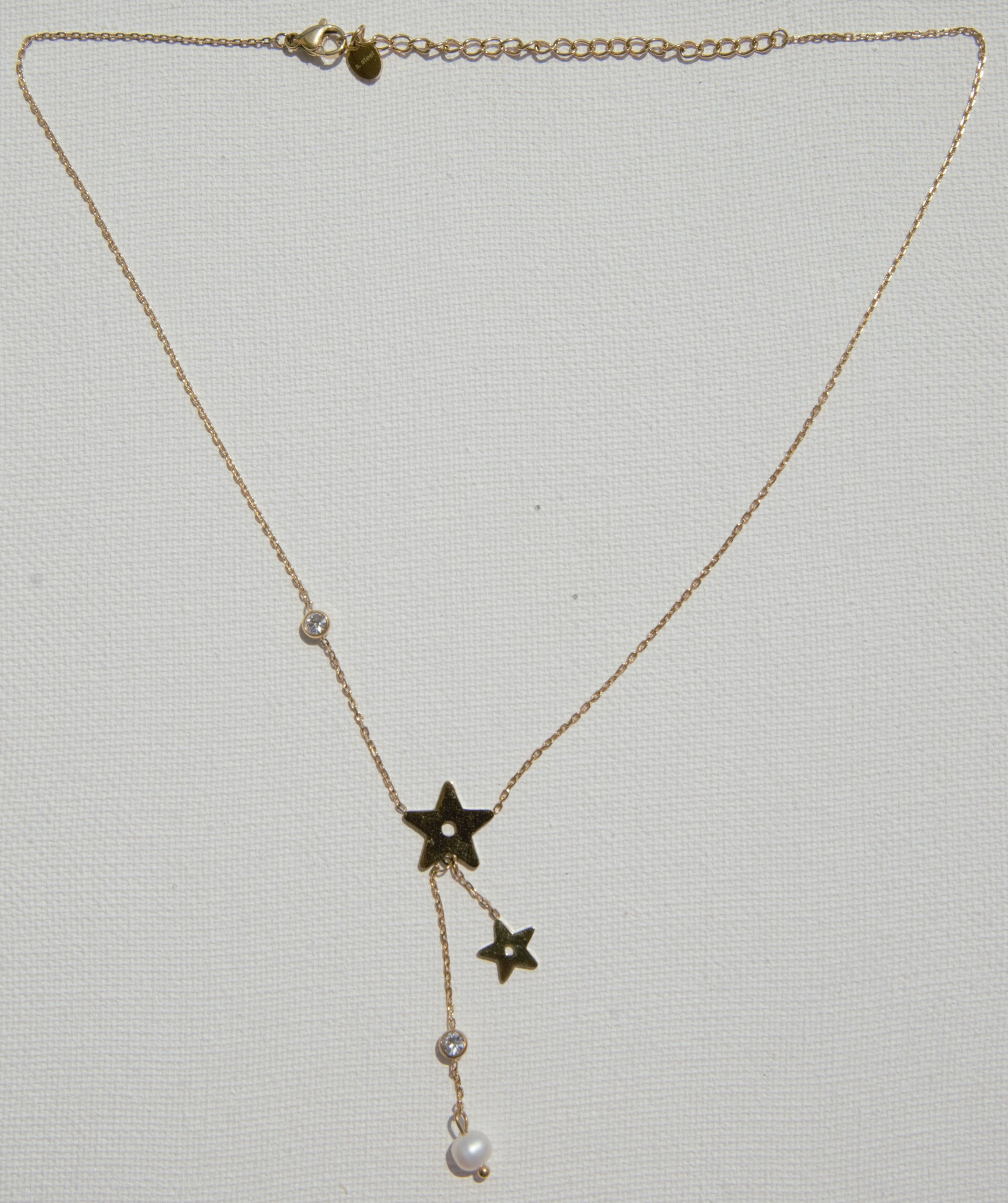 Collier étoiles doré avec une perle d'eau douce et strass en acier .38+7