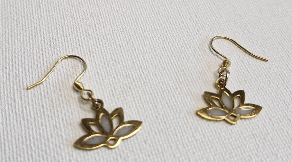 boucle d'oreille en acier inoxydable ,lotus plaqué or 18 carat veritable ,14x18.5x1mm et resine blanc