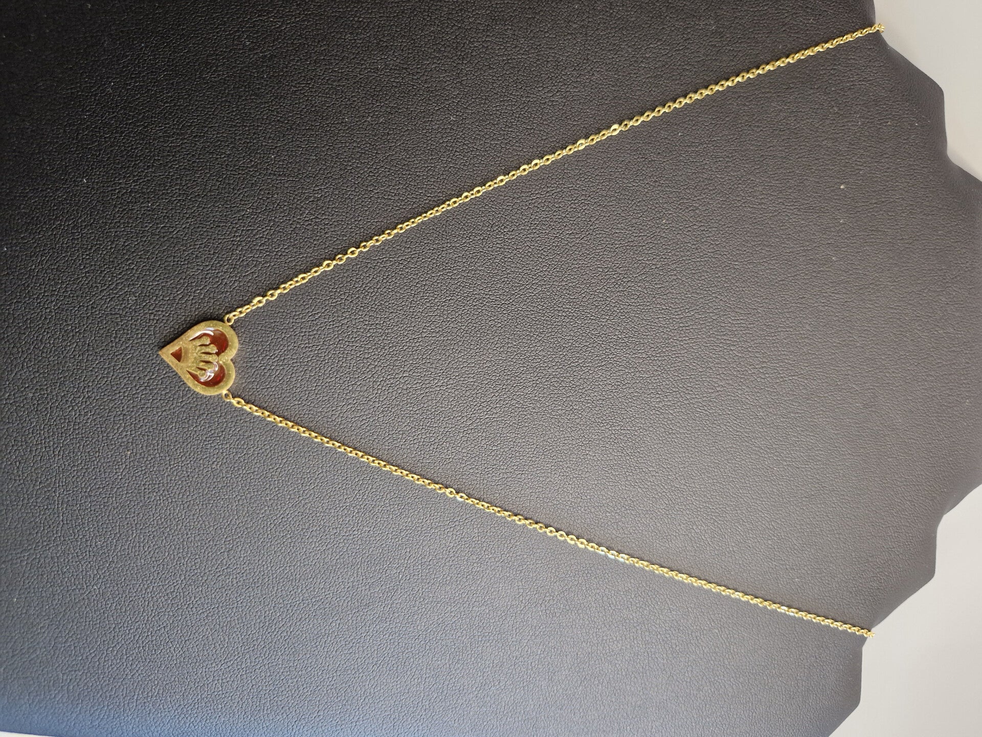 collier coeur/ couronne en acier inoxydable avec de la resine rouge , 45 cm