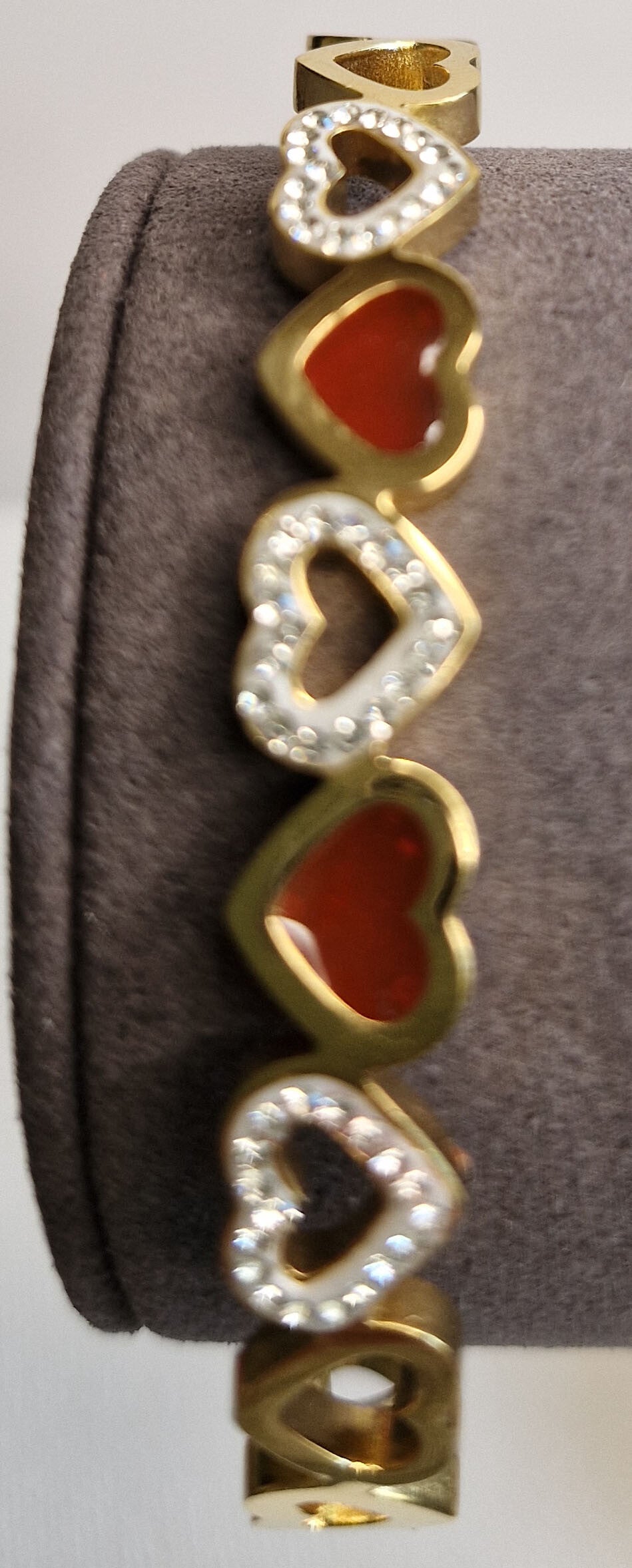 Bracelet chic en acier inoxydable avec decor de coeur strass et resine rouge,6 sur 5 cm